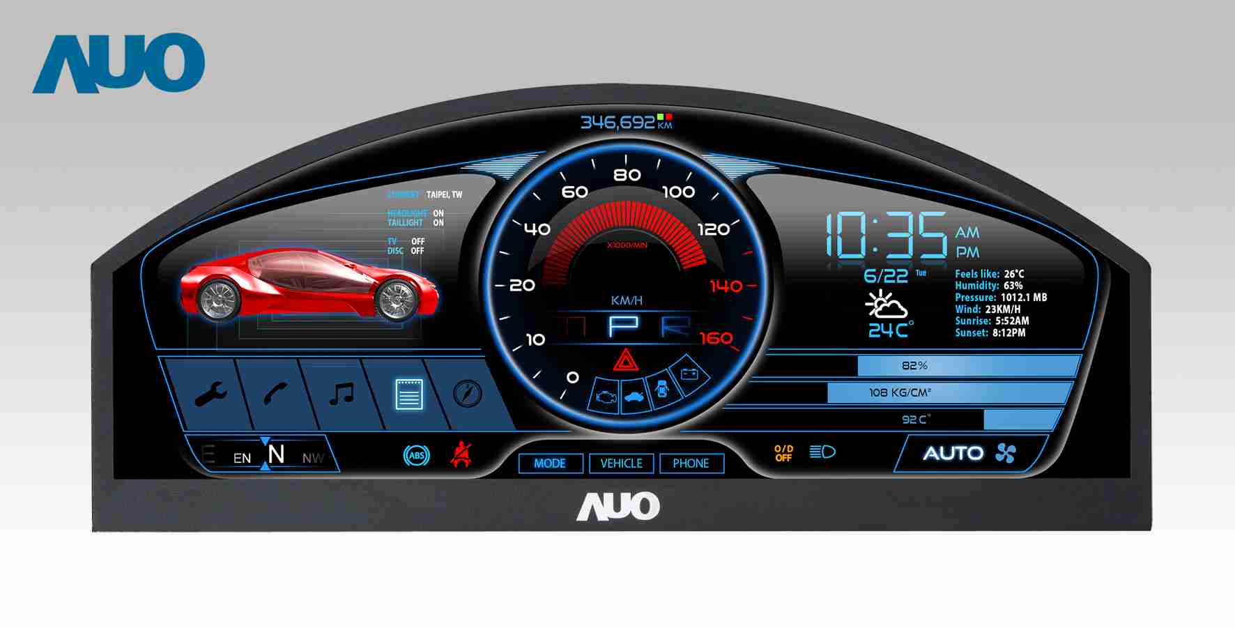 z6mg·人生就是博 12.3吋超高解析异型切割车用面板,,拥有流线外观及精细画质